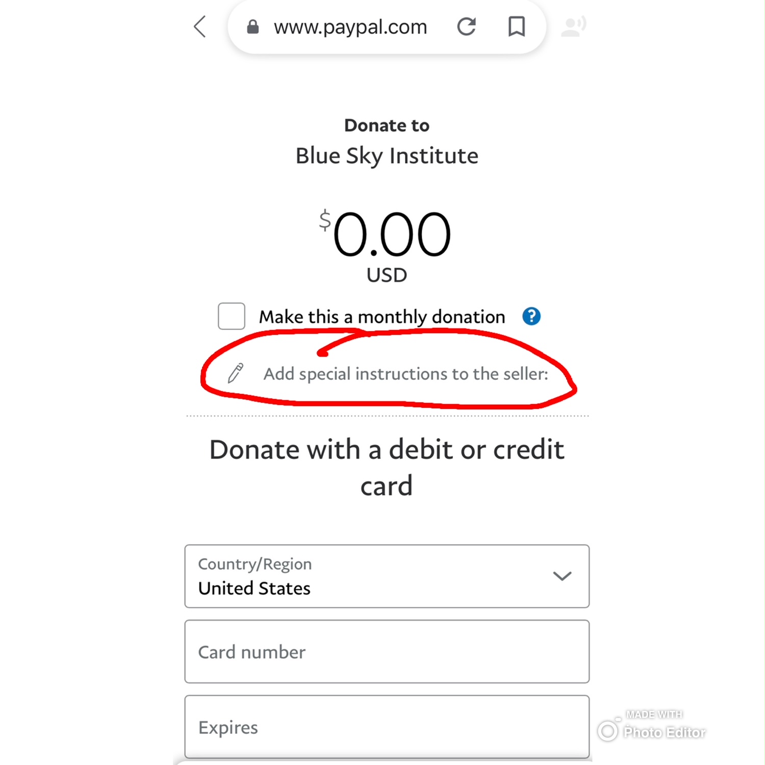 To make donations for specific purposes, please note it in the “Add special instructions to the seller” field (top of donation page on Paypal.).